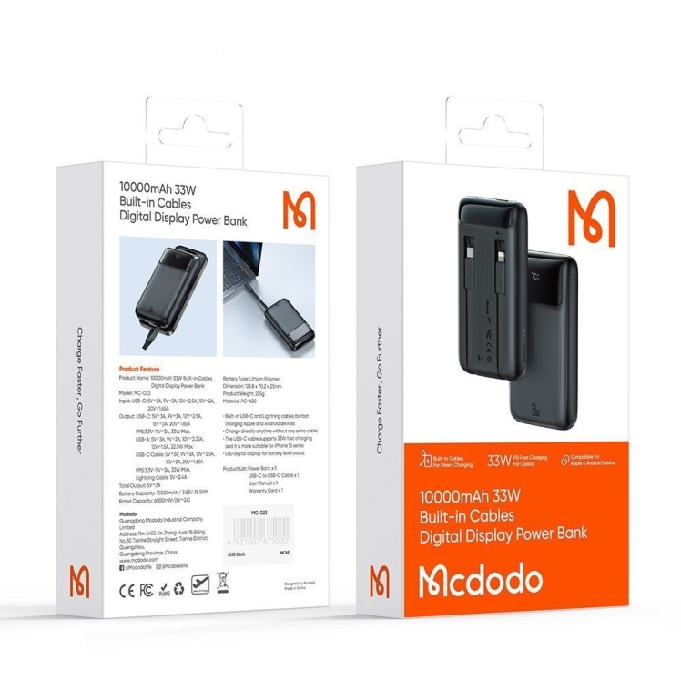 مقایسه پاوربانک مک دودو مدل MC-6041 ظرفیت 10000 میلی آمپر ساعت با توان خروجی 22.5 وات ۳,۶۷۰,۰۰۰ تومان۱,۸۳۵,۰۰۰ تومان افزودن به سبد خرید