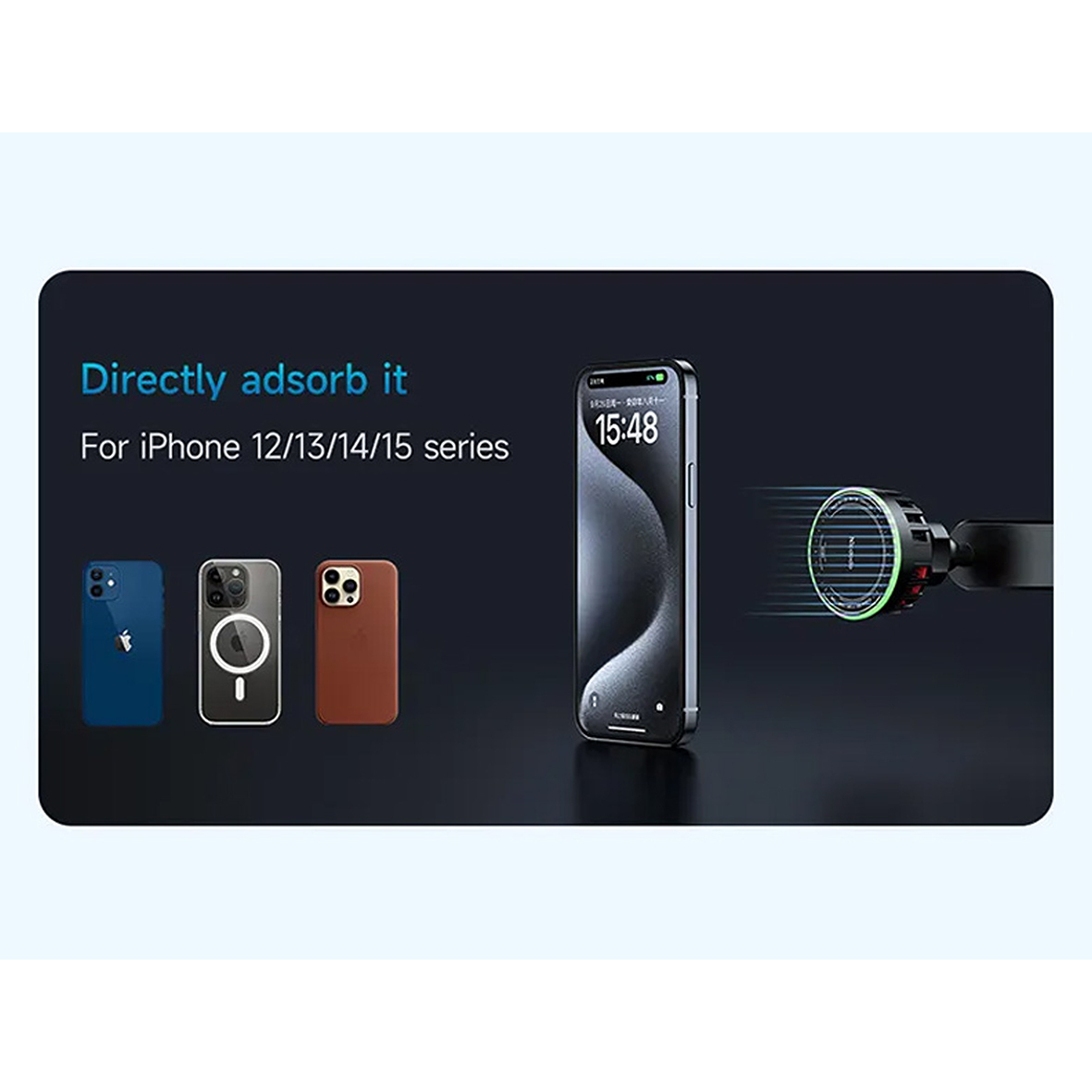 سایر قابلیت ها | قابل نصب روی داشبورد/ سیستم اتصال مکشی/ بازو با قابلیت تغییر زاویه قابلیت گردش 360 درجه/ استانداردشارژ بی سیم Qi/ پشتیبانی از فناوری MagSafe اپل |