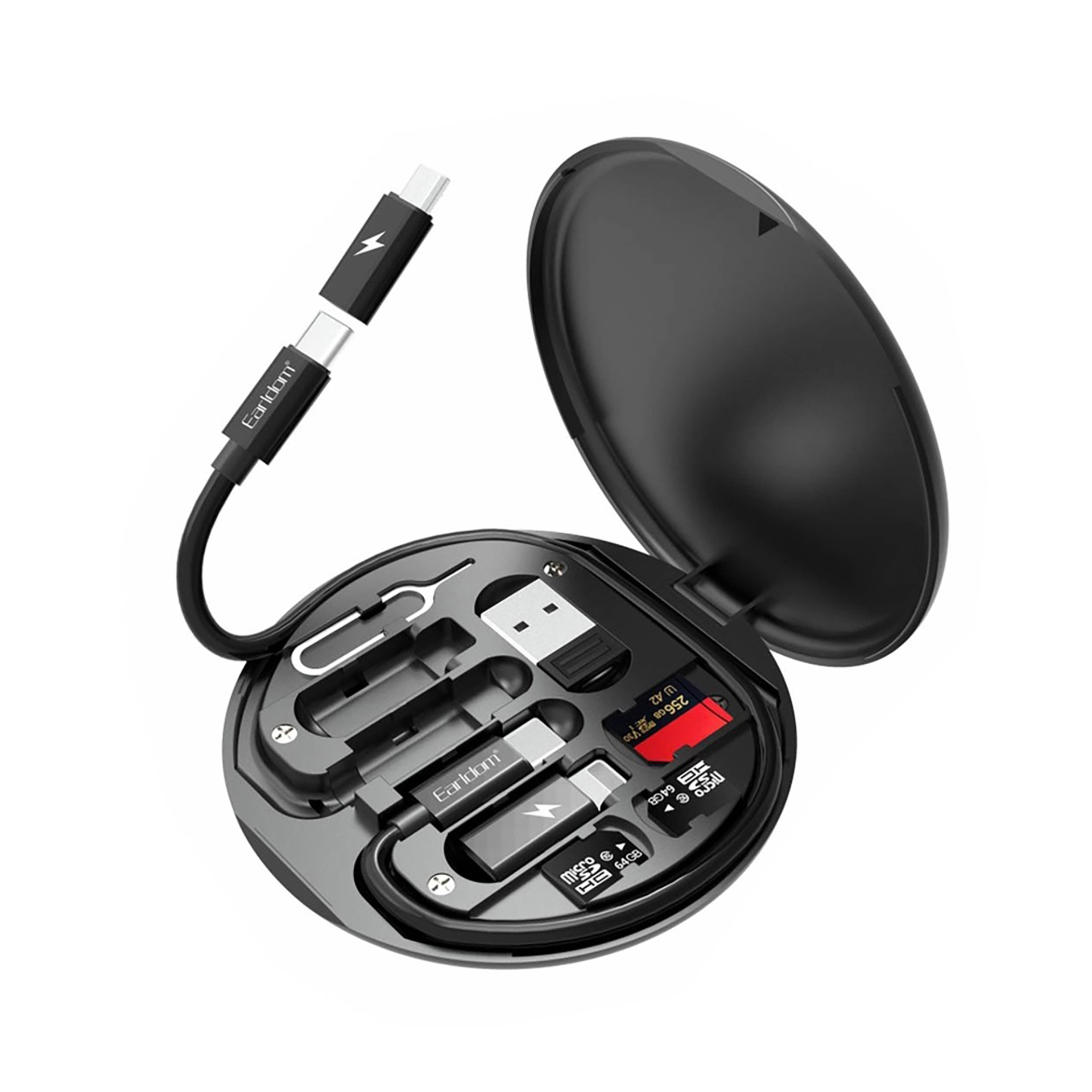 این مجموعه نیاز شما به یک کابل شارژ و دیتای USB-C کوتاه و جمع و جور در هر محل را بر طرف می سازد. از طرف دیگر همراه داشتن انواع مبدل های USB-C امکان شارژ انواع گوشی و تبلت را برای شما محیا سازد. مبدل های USB-C در یک پک پلاستیکی کاملا مقاوم و دایره ای، به شکلی کاملا جمع و جور جای گرفته اند. مبدل ها شامل تبدیل USB-C به Micro USB، USB و لایتنینگ اپل می باشد. همچنین یک سوزن تعویض سیمکارت به همراه دو جای نگهداری میکرو سیمکارت و رم و همچنین یک جای نگهداری سیمکارت نیز در بین اسلات برای کاربر تعبیه شده است. کاربرد دیگر این پک امکان استفاده از پایه های پلاستیکی نصب شده در پشت پک به عنوان استند گوشی می باشد